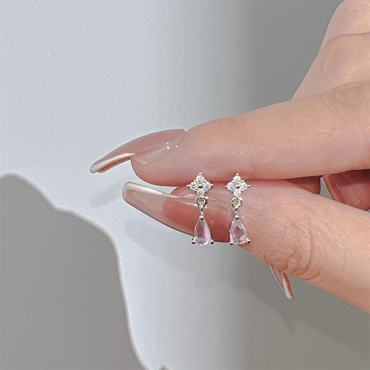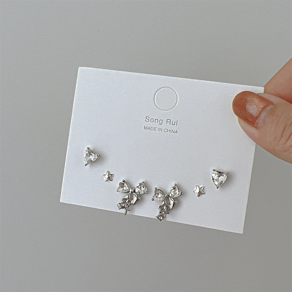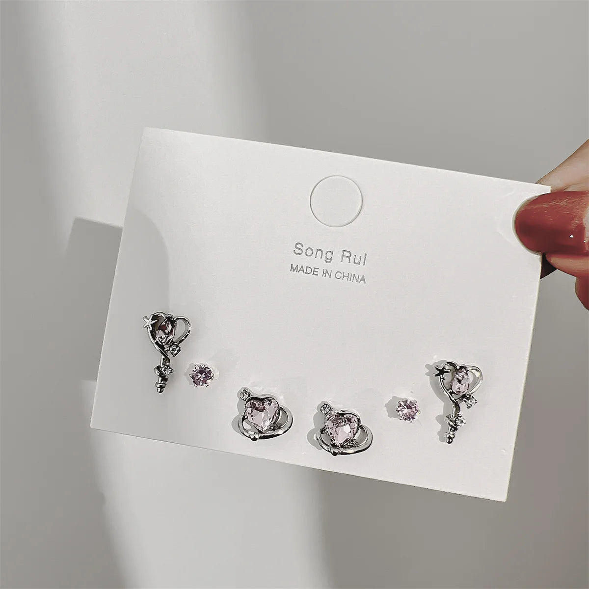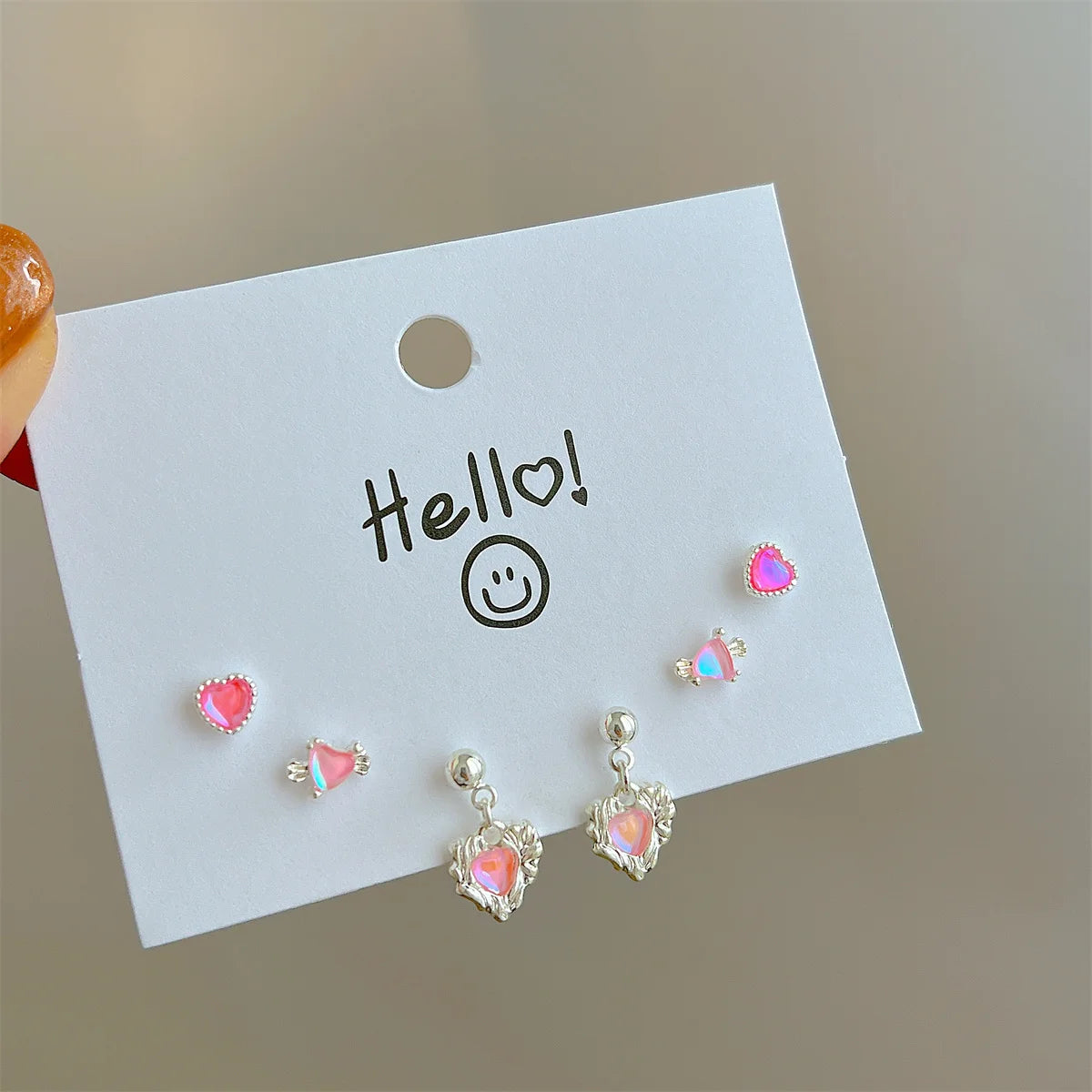 17KM INS Y2K Pink Heart Stud Earrings for Women Girls Korean Bow Dangle Earring Set Sweet Crystal Drop Earring Fashion Jewelry