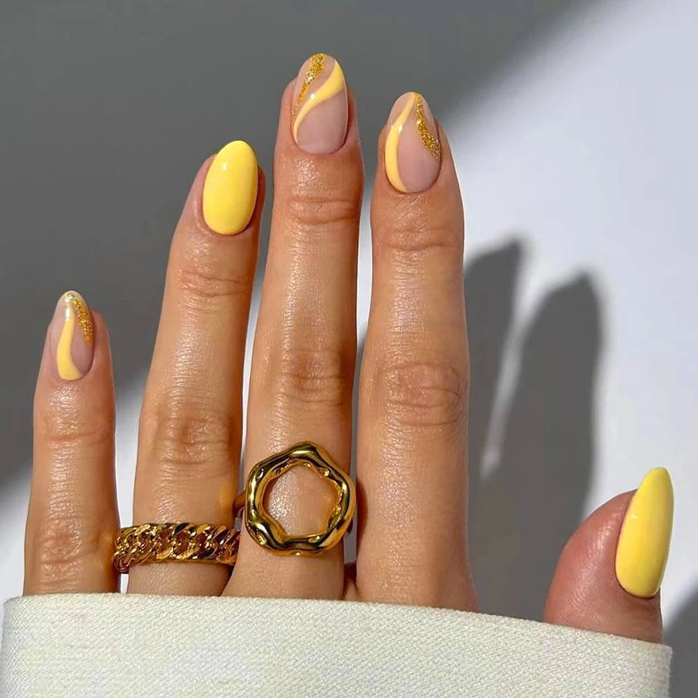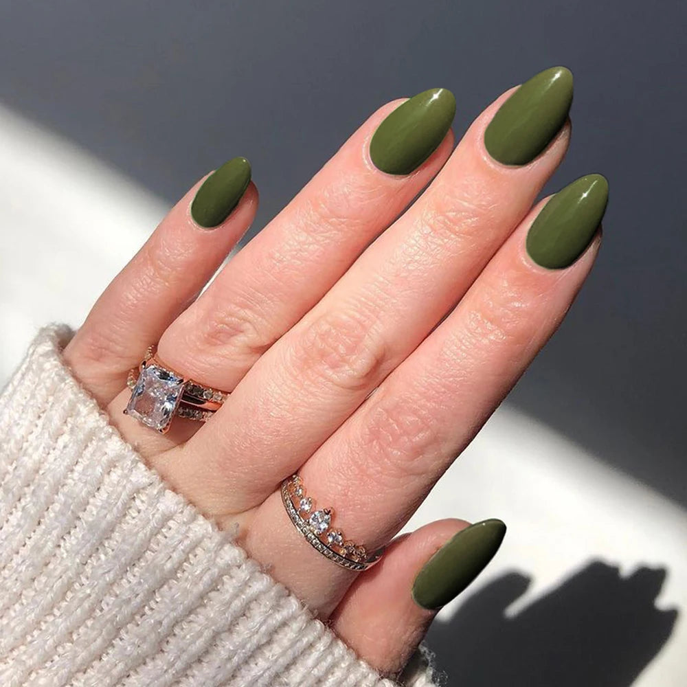 24pcs short oval nails, press nails, removable, reusable, artificial nails for women and girls daily wear