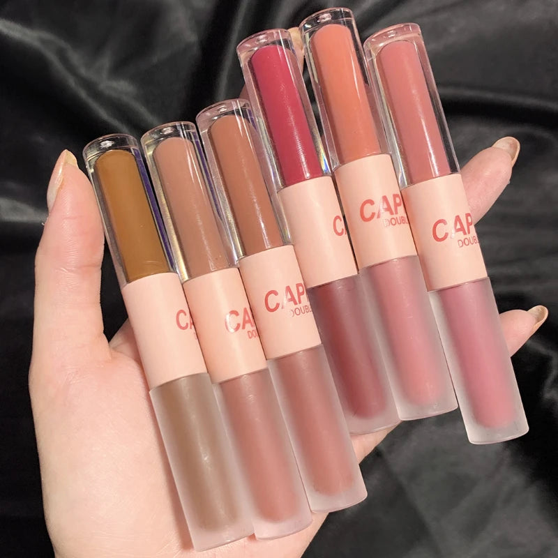 Double Headed Lip Glaze Chestnut Lip Mud Long Lasting Moisturizing Waterproof Sweatproof Matte Lipstick Korean Cosmetics