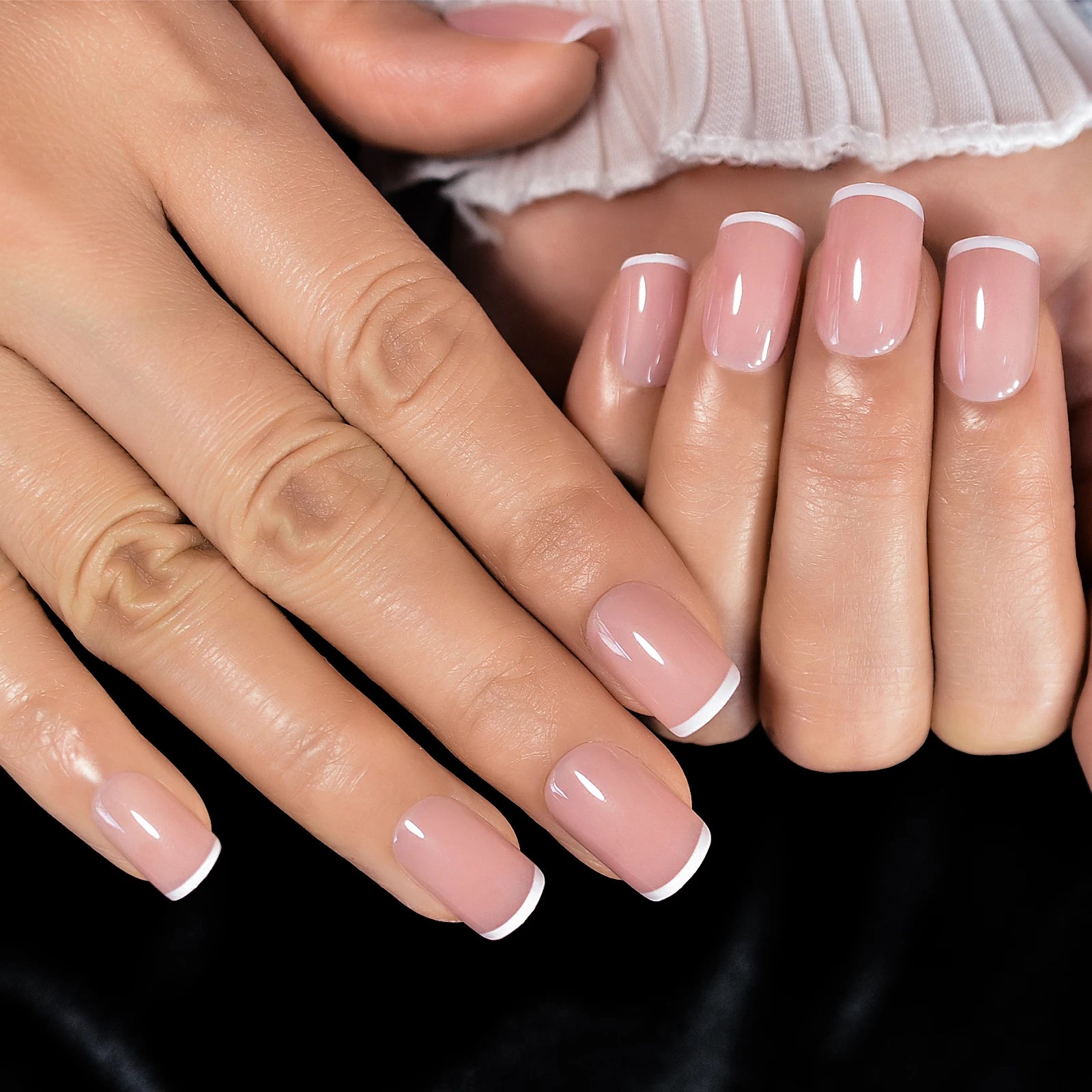 French Style Fake Nails Natural Nude White Tip Glossy Press On Fingernails Nails Art Manicure Set Beauty Many Style for Choose