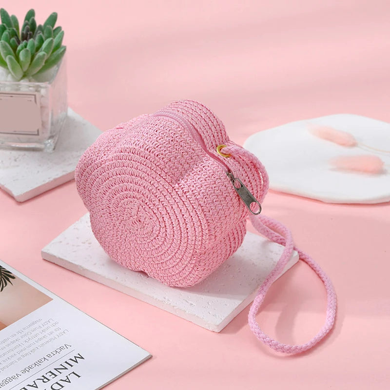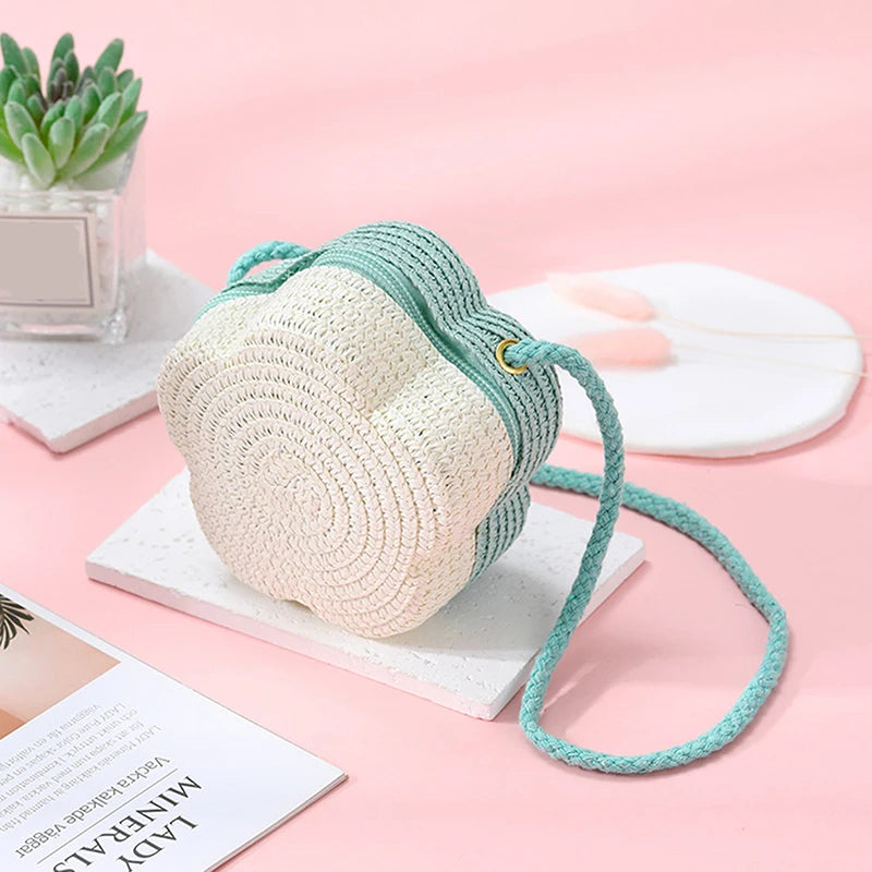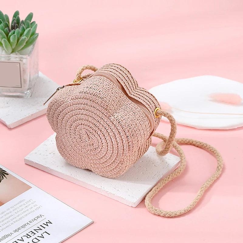 Handmade Kids Girls Shoulder Bag Flower Straw Baby Bags Messenger Bag Children Keys Coin Purse Cute Princess Mini Handbag