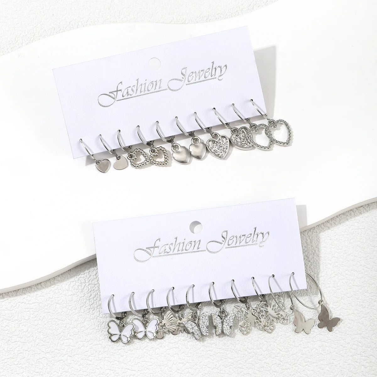 Korean Acrylic Butterfly Pendant Earring Set Fashion Oil Dripping Heart-shaped Hoop Earrings For Women's Charm Party Jewelry