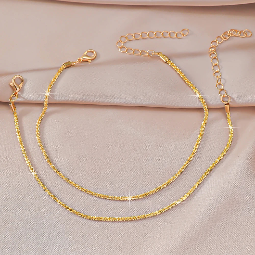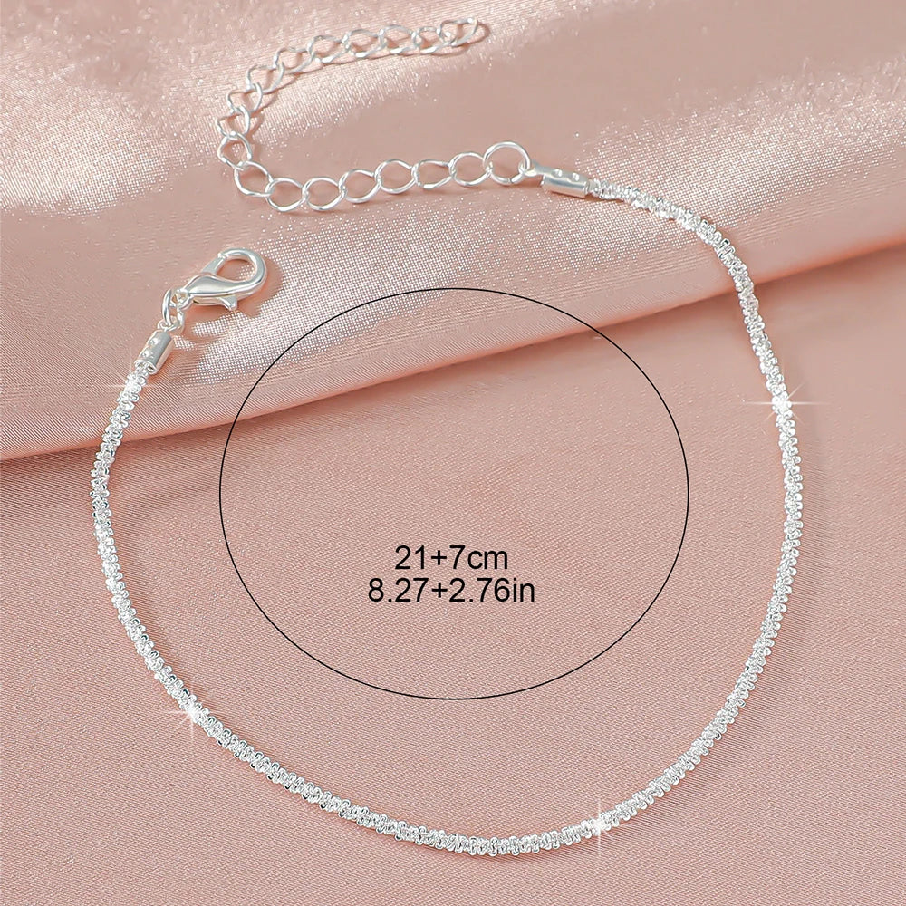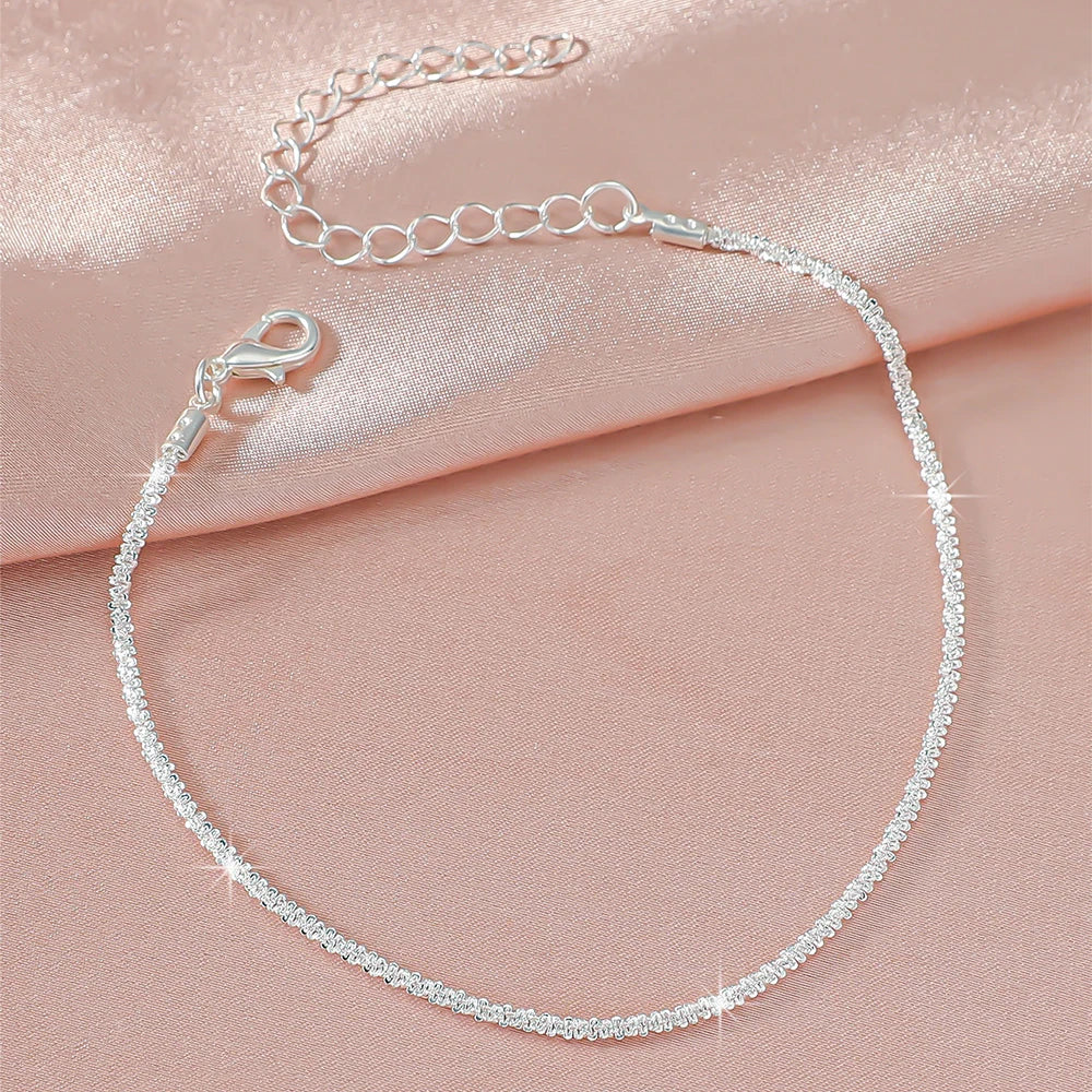 LATS Shiny Sparkling Simple Anklet for Women Gold Silver Color Elegant Jewelry Female Beach Ankle Bracelet on Foot Party Gift