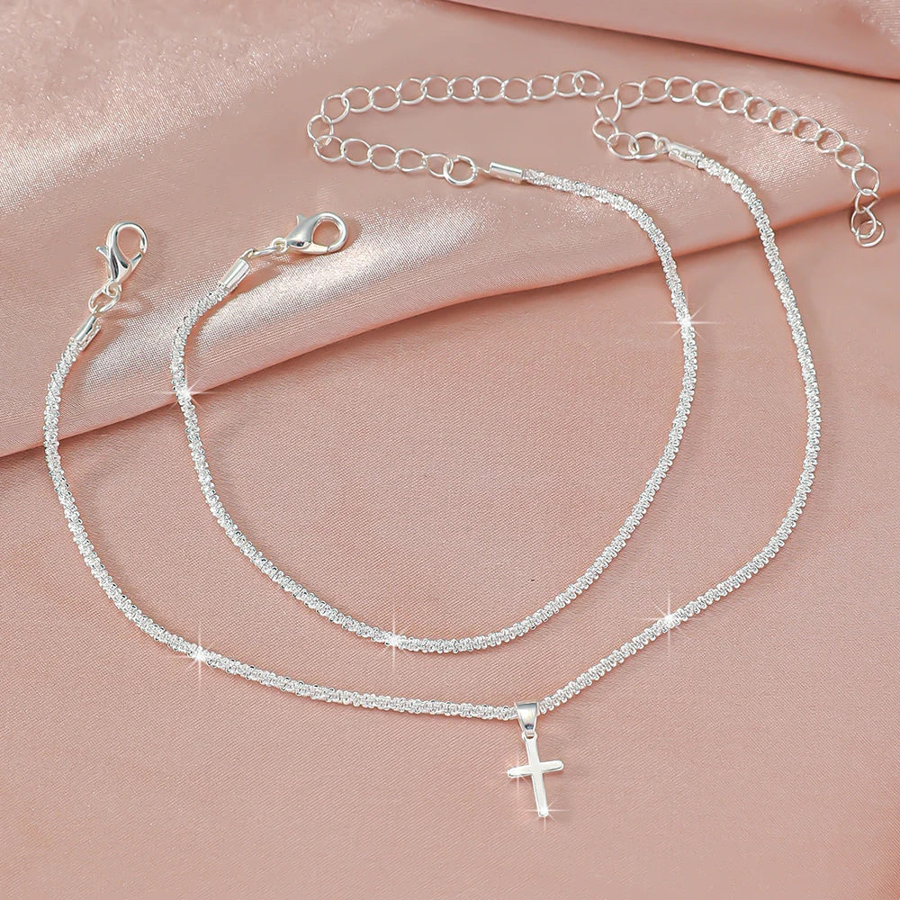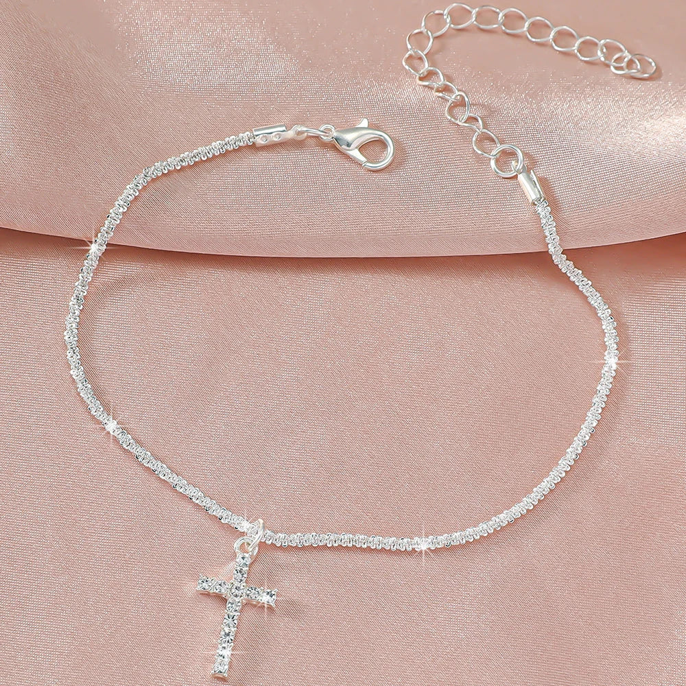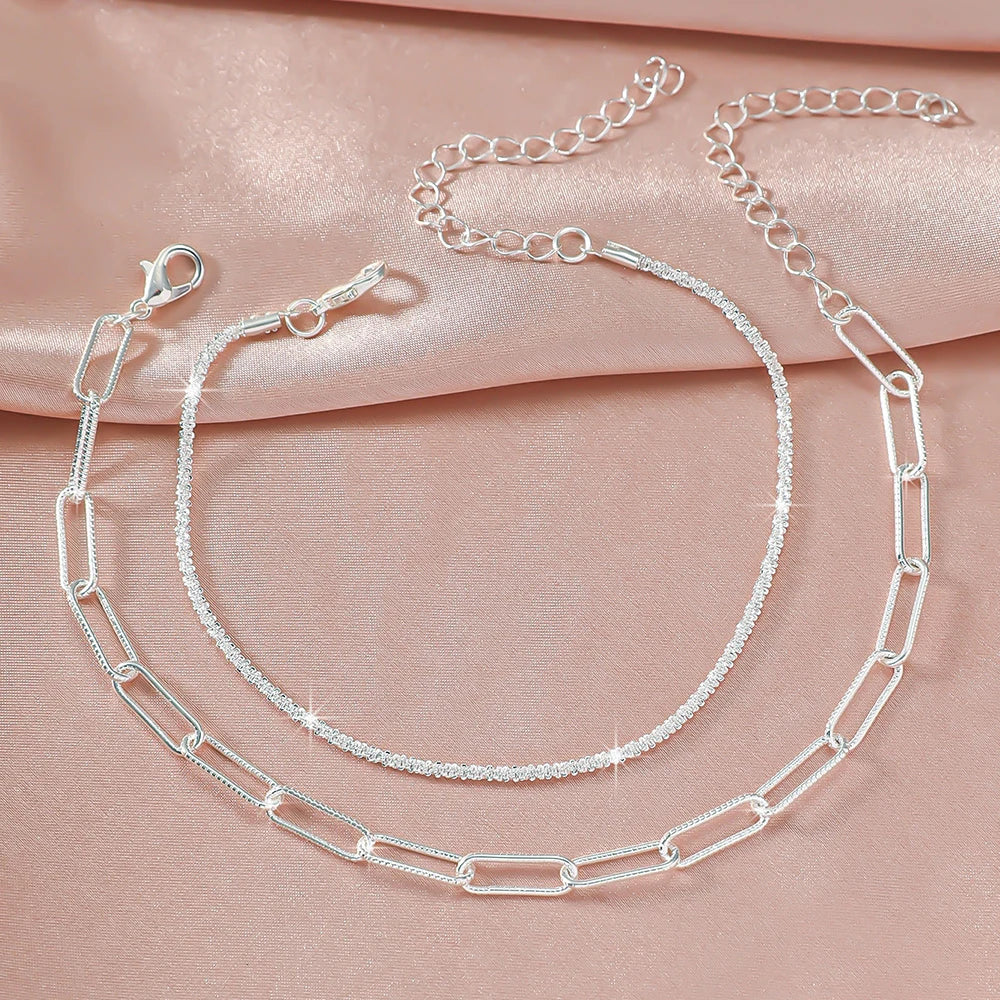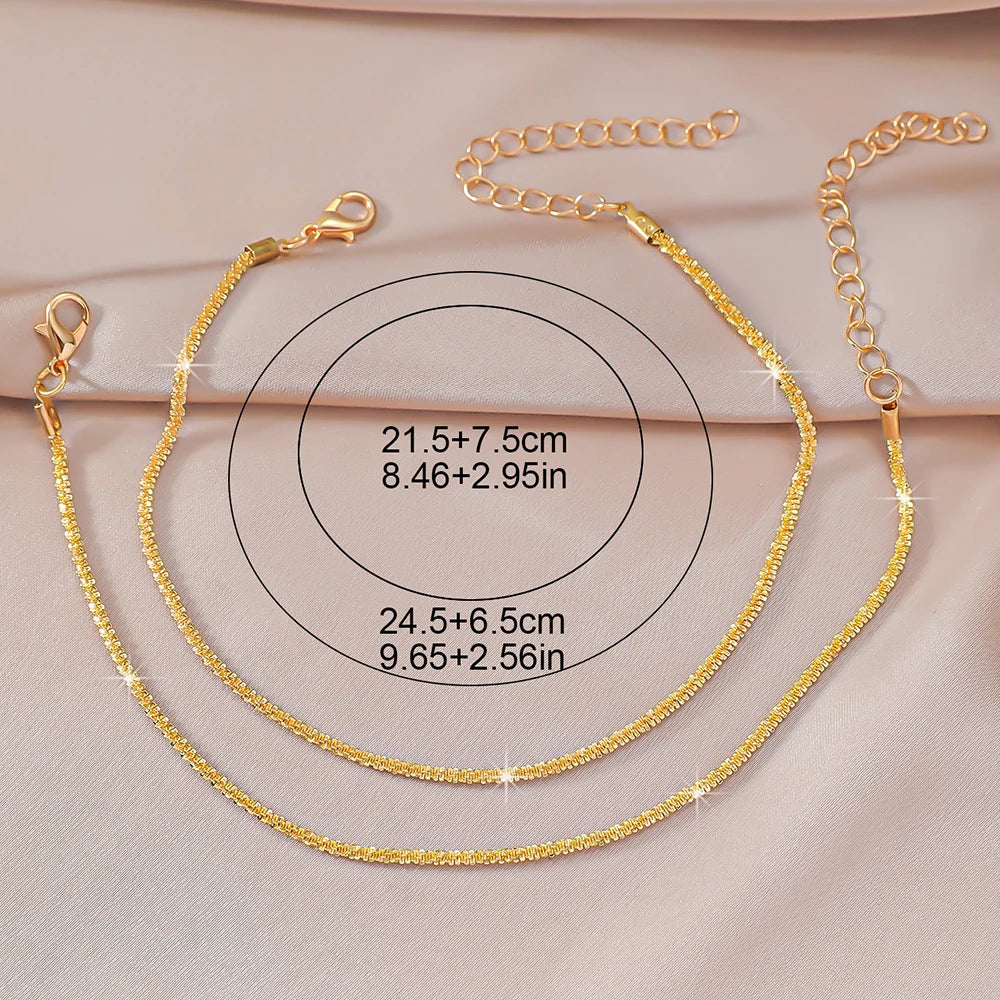 LATS Shiny Sparkling Simple Anklet for Women Gold Silver Color Elegant Jewelry Female Beach Ankle Bracelet on Foot Party Gift