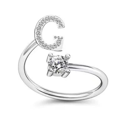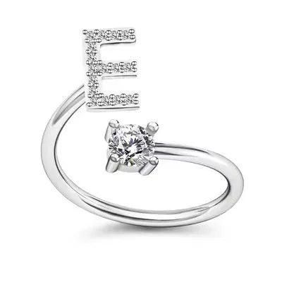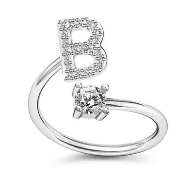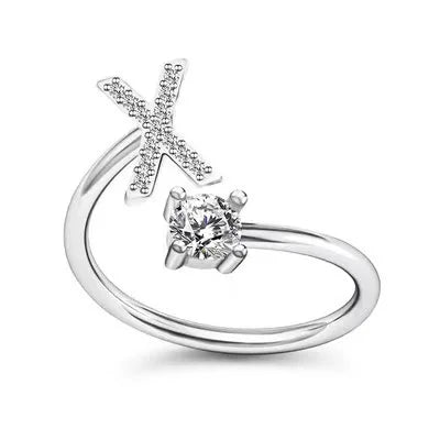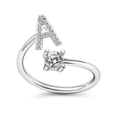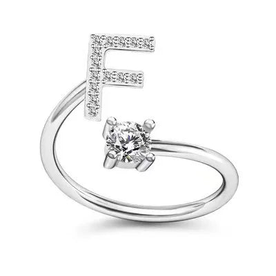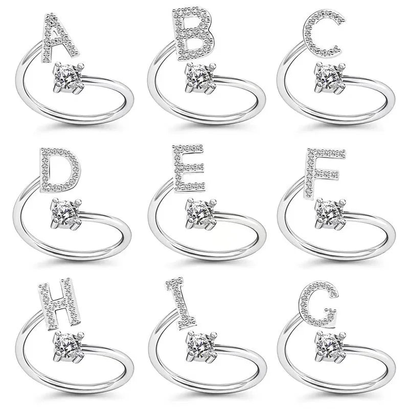 LATS Zircon Initial A-Z Letter Rings for Women Girl Adjustable Opening Ring Name Alphabet Female Wedding Fashion Jewelry Gift