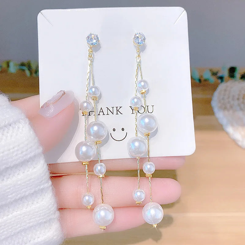 Long Earrings Elegant Pearl Tassel Earrings for Women Crystal Drop Earrings Korean Fashion Dangle Earrings Wedding Party Jewelry