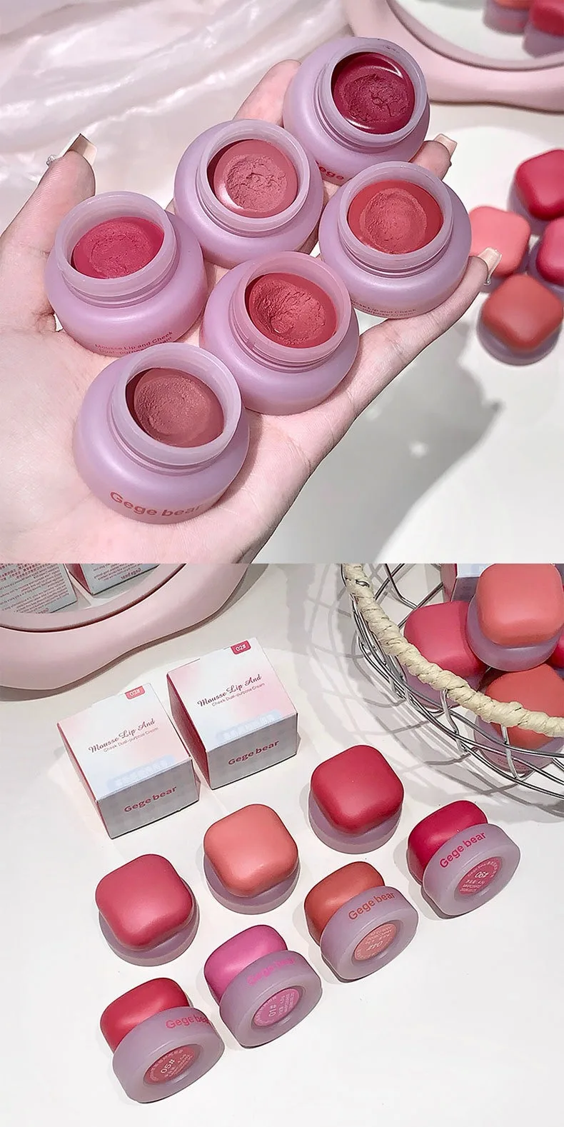 Matte Velvet Mist Cheek Lip Mud Natural Nude Multi-purpose Blush Orange Brown Solid Lip Gloss Tint Lasting Shading Korean Makeup