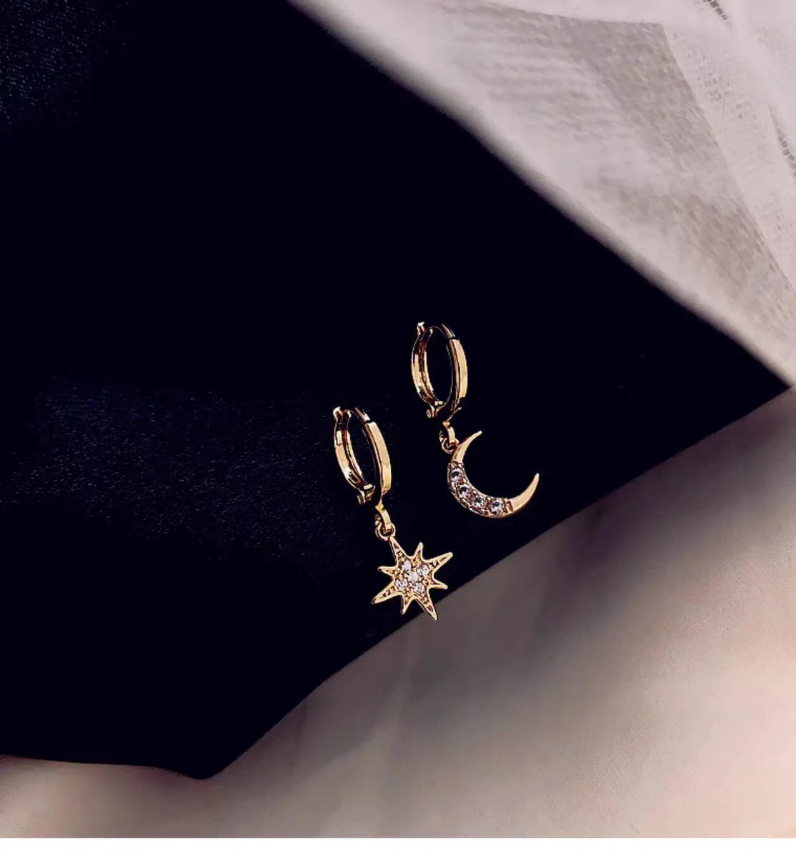 VENTFILLE 925 Sterling Silver CZ Star Moon Asymmetric Hoop Earrings for Women Girls Rose Gold Silver Color Party Jewelry Gifts Dropshipping Wholesale